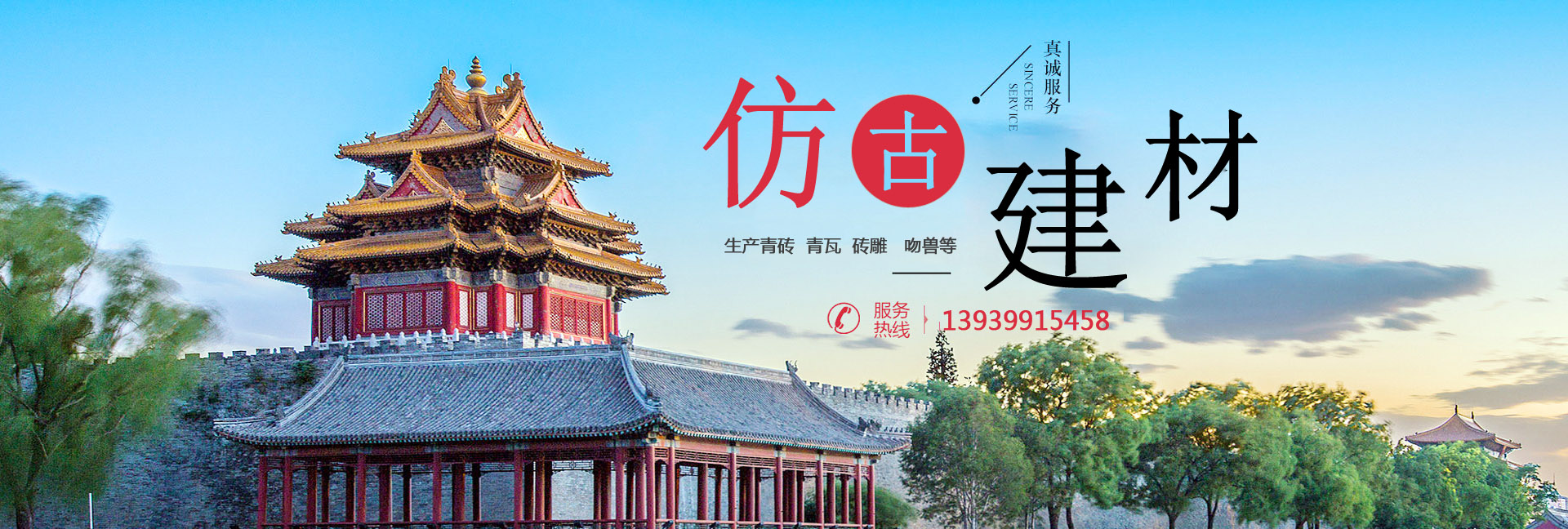 倍頓仿古建材品種較全,主要生產青磚、青瓦、磚雕、吻獸等